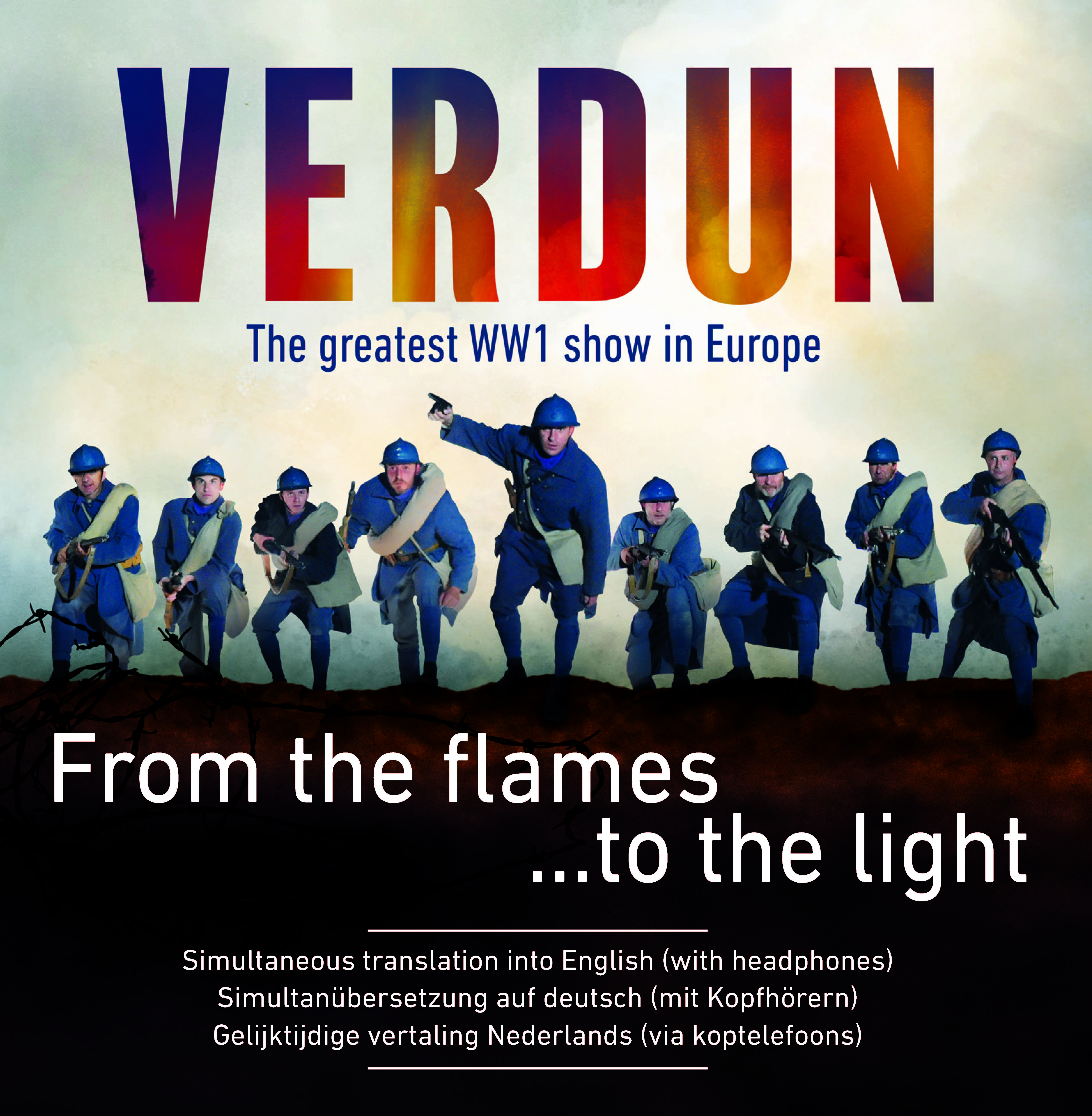A moving tribute to these hundreds of thousands men, more than 300 000 of whom perished in a tragic face-to-face in this land of Meuse. A spectacular sound and light show, filled with humanity, which ends on a note of hope : Armistice, reconciliation and Peace.